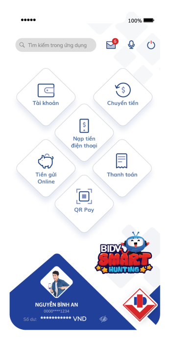 Đăng nhập BIDV SmartBanking, chọn icon “Smart Hunting” ở góc phải màn hình.